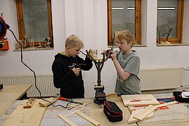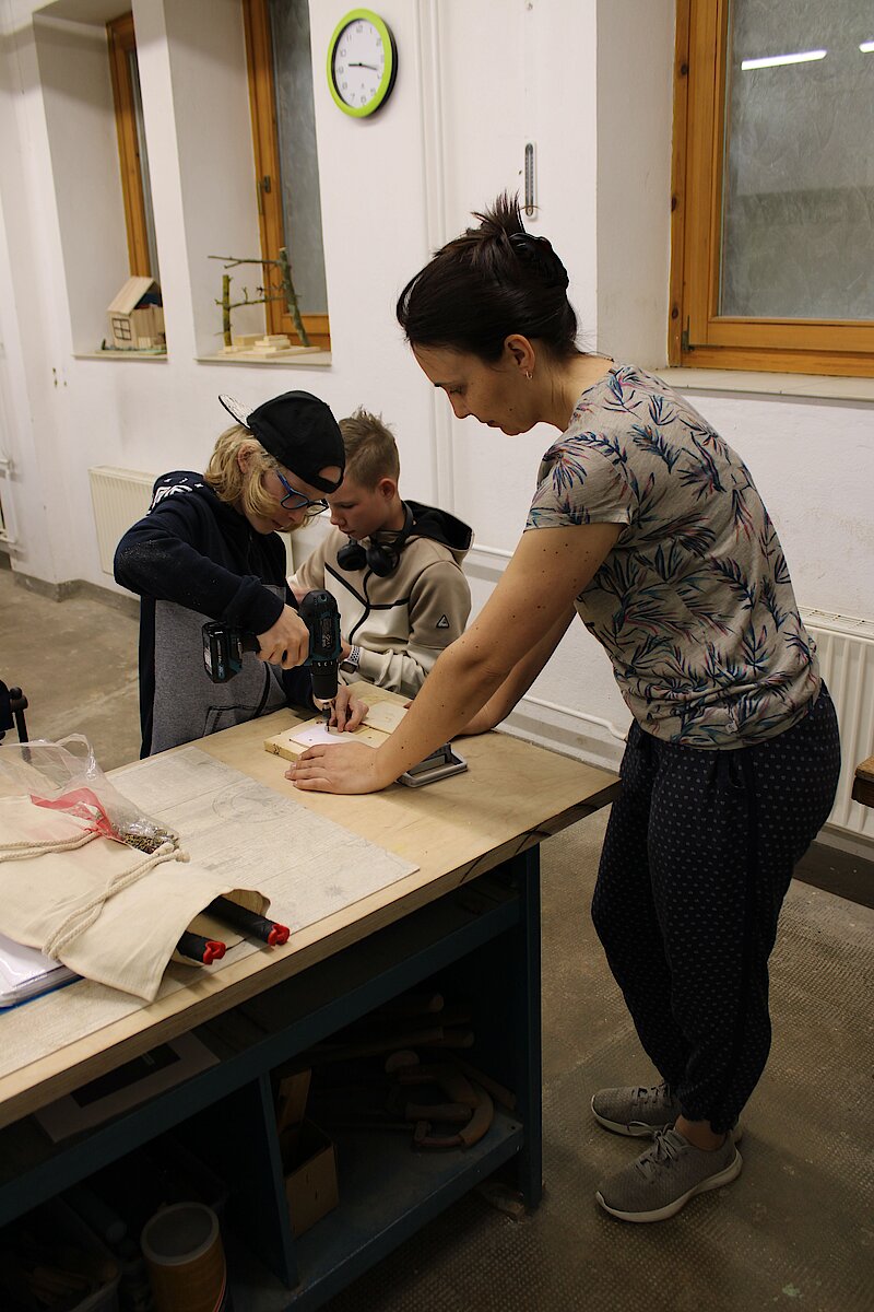 Dieses Schuljahr sollten die Schüler eigentlich eine Hasen-Handyhalterung bauen, aber da das Schuljahr so kurz war, haben es leider nicht alle geschafft. Deshalb durften meine Gruppe in der letzten Stunde nach Abstimmung noch einmal kleine Minihäuschen bauen, da wir ja damit schon Erfahrung gesammelt hatten. Dafür verwendeten wir wieder Naturmaterialien und Holz. Schade ist, dass wir nicht wie in der 5. Klasse zwei Stunden TC in der Woche haben, sondern nur noch eine.