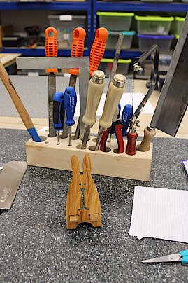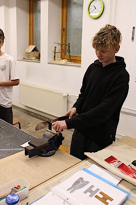 Im Unterricht haben wir neben Mathe, Deutsch & Co. in der 5. und 6. Klasse auch das Fach TC. Dies ist die Abkürzung für Technik und Computer. Frau Marek, Frau Kraft und Frau Lampert leiten den Unterricht. Bei Frau Kraft lernen wir die Theorie, bei Frau Lampert die Praxis und bei Frau Marek üben wir mit dem Computer umzugehen. Dafür sind wir in drei festgelegten Gruppen mit der Parallelklasse eingeteilt. Unser Arbeitskabinett befindet sich im Untergeschoss des A-Gebäudes der Schule. Darin steht eine lange Werkbank mit Unterlagen, Schraubstöcken und Werkzeugkästen.