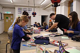 Der Tag startete für alle in der Mensa des Gymnasiums. Die Blicke der Kids schweiften durch den Gang. Hier ist alles doch etwas größer als im gewohnten Schulhaus der Grundschule. Danach wurden die Gruppen aufgeteilt. Die einen besuchten die Oberschule, die anderen starteten im Gymnasium. Hier konnten die Viertklässler viel über den Aufbau einer Orgel kennenlernen. Dieses besondere Stück findet sich in der Aula wieder und beeindruckt immer wieder aufs Neue. In der Physik wurden Zeitexperimente durchgeführt und eine Sonnenuhr gebastelt. In der Oberschule wurde ebenfalls ausgeschnitten und geklebt. Im Technikraum wurden Schmetterlinge, Vögel oder Marienkäfer hergestellt. Im Fach Englisch wurde den Schülerinnen und Schülern die Herkunft der englischen Sprache erläutert. Die Pausen wurden im Schulclub verbracht. Hier halten sich unsere Schüler ab der 5. Klasse in ihren Freistunden oder am Nachmittag auf.