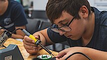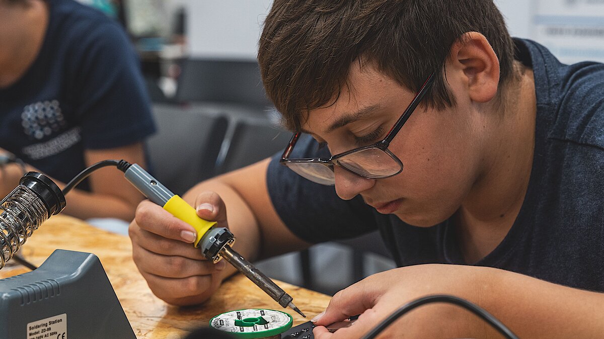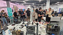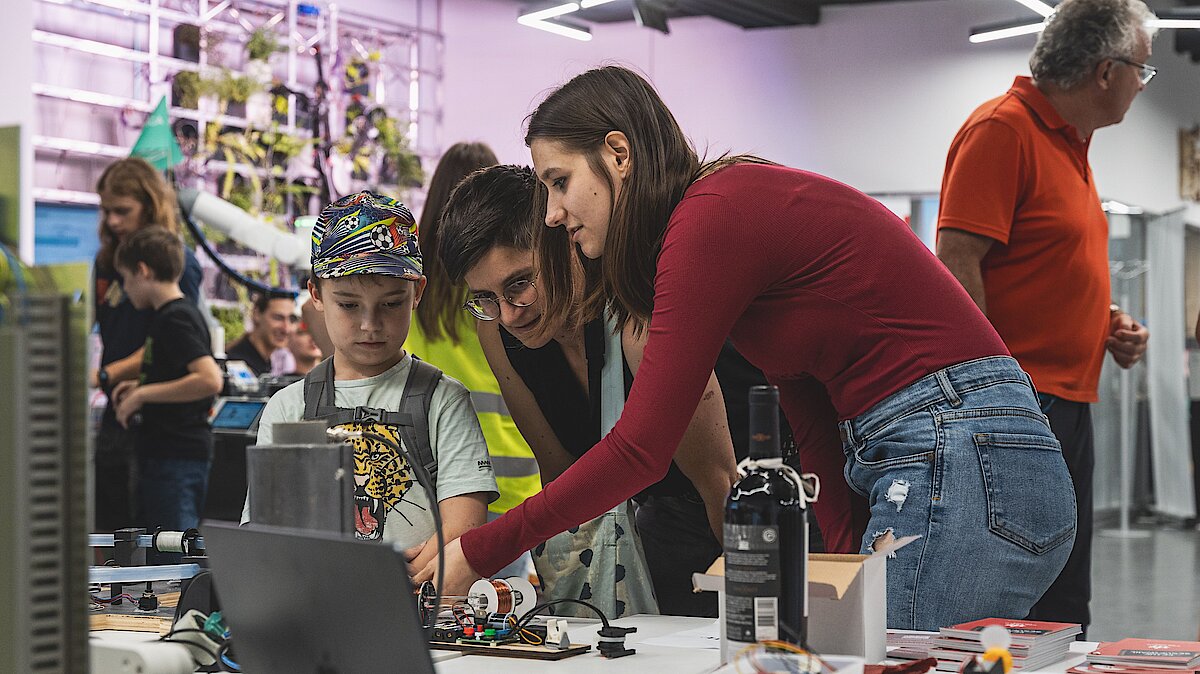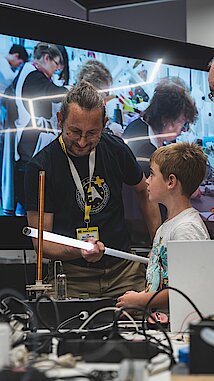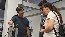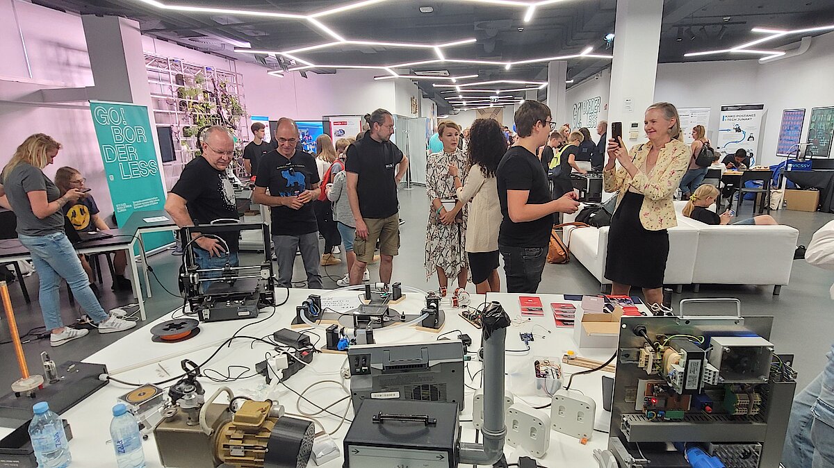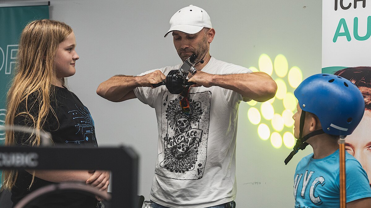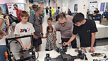 Our school was represented by the students Felix Meinhard, Marciello Brignoccoli, and Louis Heinig, together with our colleague Mr. Theumer, who participated with an exhibition booth at the Technical Culture Days in the XCenter. Supporting representatives included Ms. Josephine Harzer, an apprentice from Don Bosco, and Mr. Koczielski from WIR electronic GmbH. This cooperation was made possible in previous years primarily through the commitment of the Chemnitz Industrial Association under the leadership of Ms. Hoffmann.