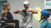 In den letzten beiden Tagen präsentierten wir unsere Arbeitsgemeinschaft schließlich auf der Messe im XCenter. Dabei ergaben sich viele anregende Gespräche – mit Schülerinnen und Schülern, Bürgerinnen und Bürgern der Stadt, aber auch mit dem Bürgermeister, der uns mittlerweile sogar persönlich kennt. Die herzliche Aufnahme, die wir erfahren haben, ist alles andere als selbstverständlich und hat uns alle tief berührt.