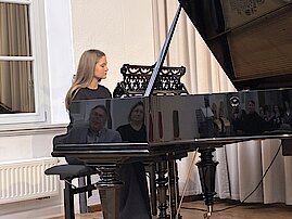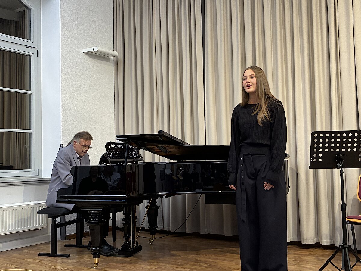 Den Auftakt machte Leopold Helbig mit „Una Mattina“ von Ludovico Einaudi – ein Stück, das sich im Laufe des Abends als Favorit der Zuhörer:innen herausstellen sollte. Es folgte Henriette Eger (Gesang), die mit „Caro Mio Ben“ und der Begleitung von Tilo Kittel am Klavier überzeugte.