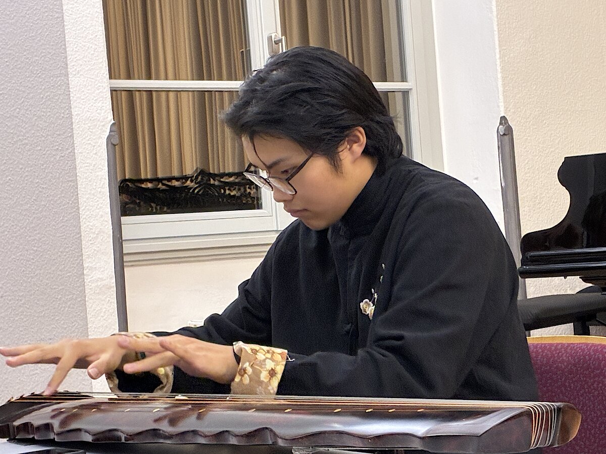 Ein besonderes Highlight war der Auftritt von Jinghua Wang, der auf der Guqin, einem traditionellen chinesischen Instrument mit sieben Saiten und ohne Bünde, spielte. Obwohl die Guqin nicht zum regulären Angebot der Jugendkunstschule gehört, bereicherte Jinghua Wang mit seinem außergewöhnlichen Können – er besitzt bereits mit 16 Jahren eine Lehrbefähigung für dieses Instrument in China – das Programm.