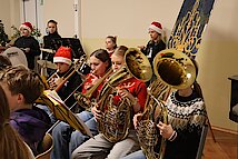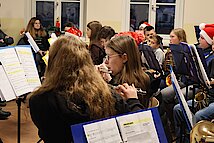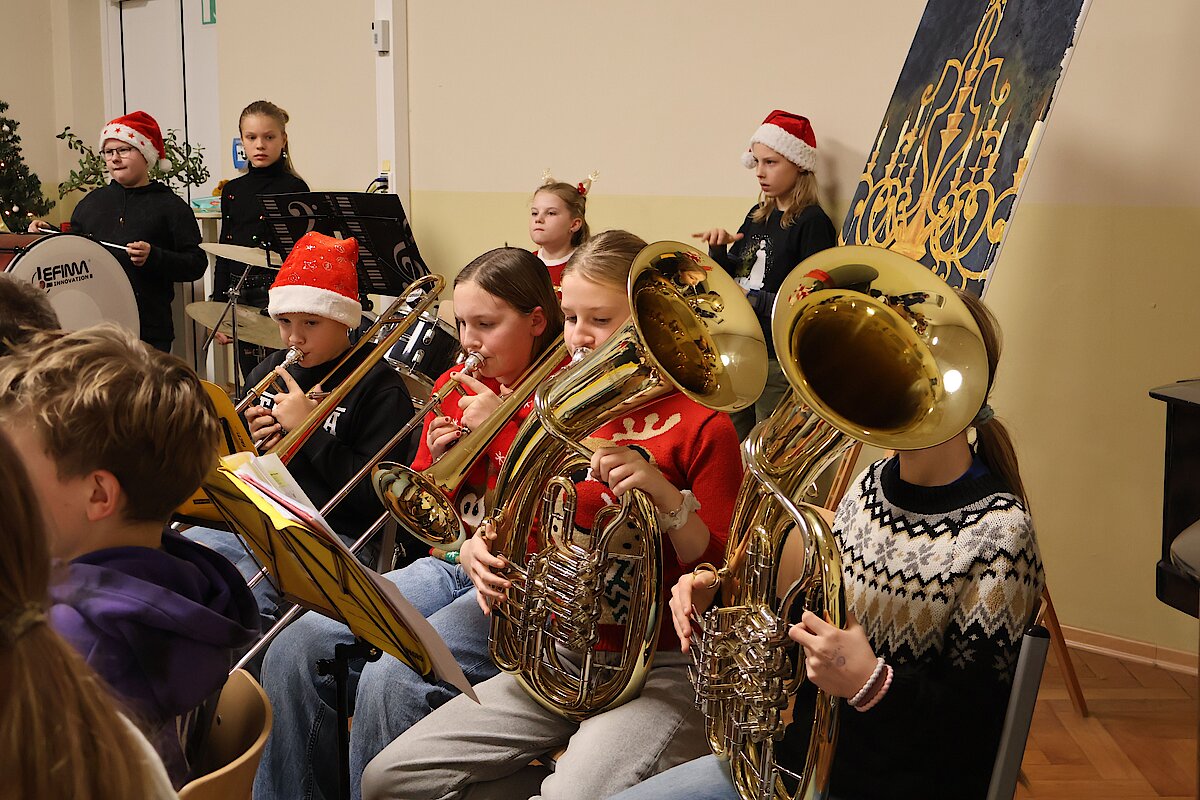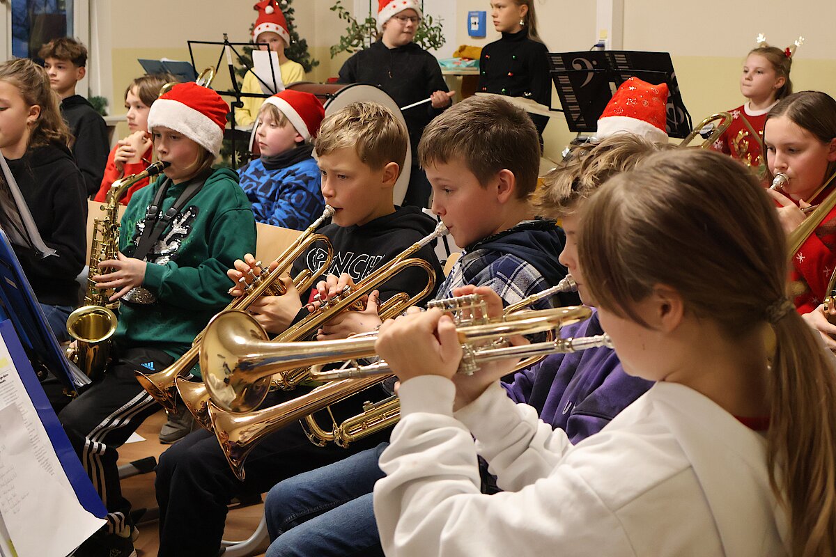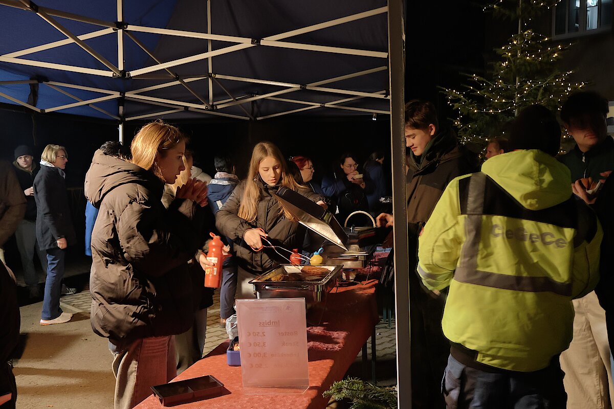 Bei kalten Temperaturen konnte man sich am wärmenden Feuer auf dem Schulhof wunderbar aufwärmen. Im Schulgebäude selbst wurde fleißig musiziert: Die Bläserklasse 5 und 6, unter der Leitung von Janine Gläser, präsentierte wunderschöne Weihnachtslieder. Nach jedem Stück wurde die Gruppe mit großem Applaus belohnt.