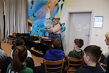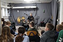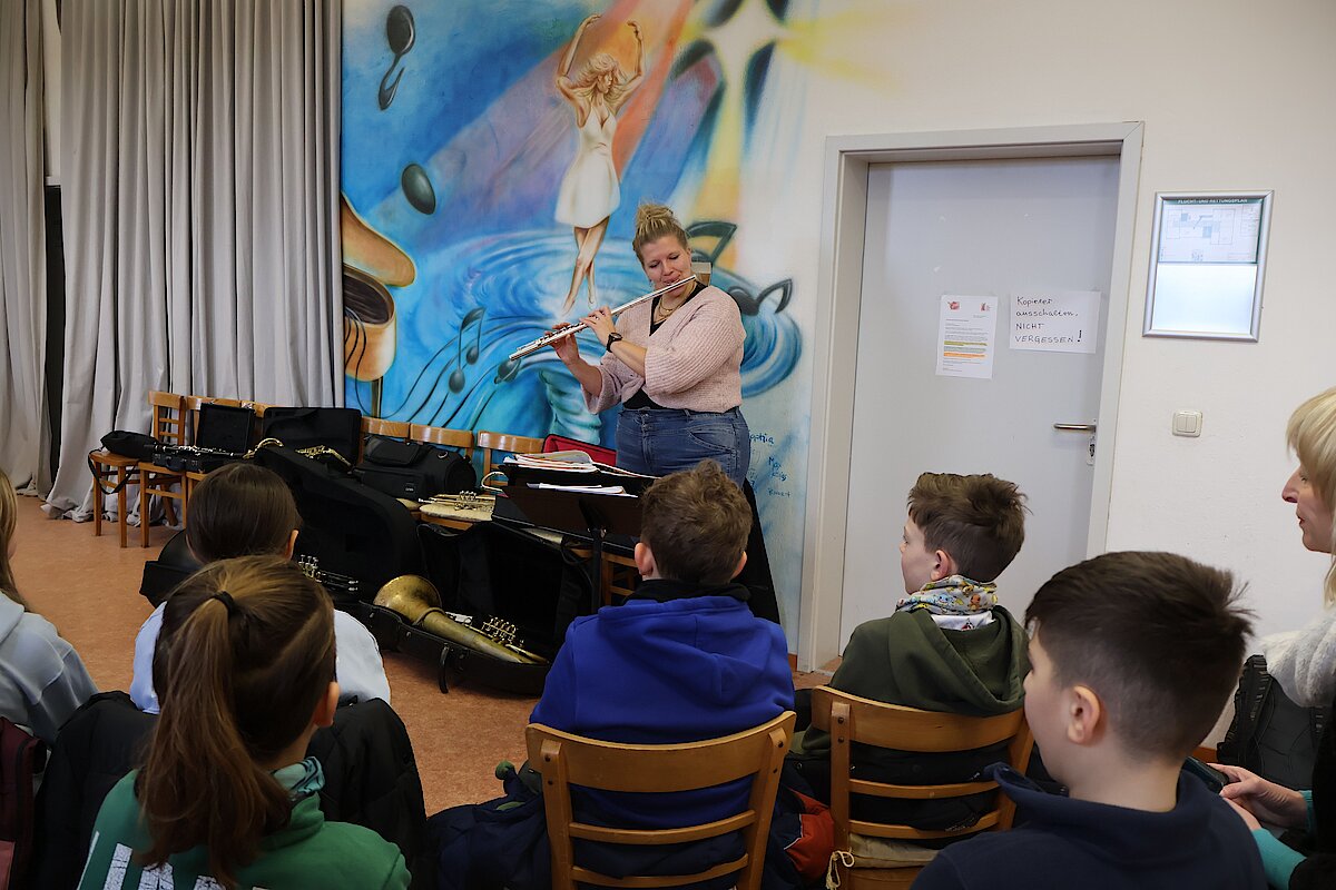 In der 1. Klasse stellten Olaf Richter und Uta Geser den Kontrabass und die Flöte vor. Die 2. Klassen lernten gemeinsam mit Frank Neubauer die Gitarre kennen, während sich die 3. Klassen über den Besuch von Wiebke Mankel und ihren Streichinstrumenten freuten. Ein ganz besonderes Highlight erwartete die 4. Klassen: Sie durften die Musiker in der Jugendkunstschule besuchen. Dort zeigte Vincent Rudlof, wie ein Schlagzeug klingt und funktioniert, und Janine Gläser nahm die Kinder mit in die Welt der Blasinstrumente.